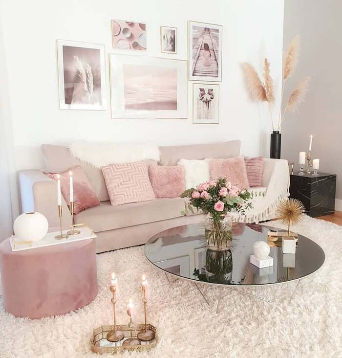 Blush-And-Bubbles Glam in a Classic Sofa Setup