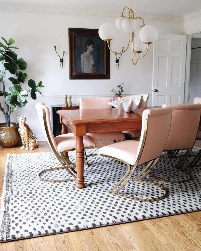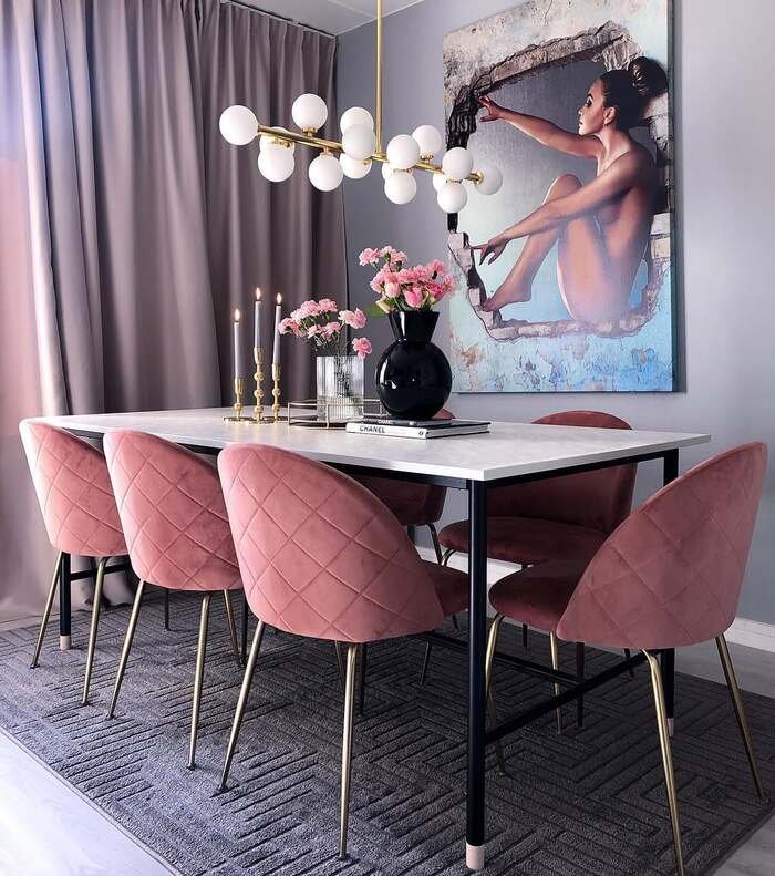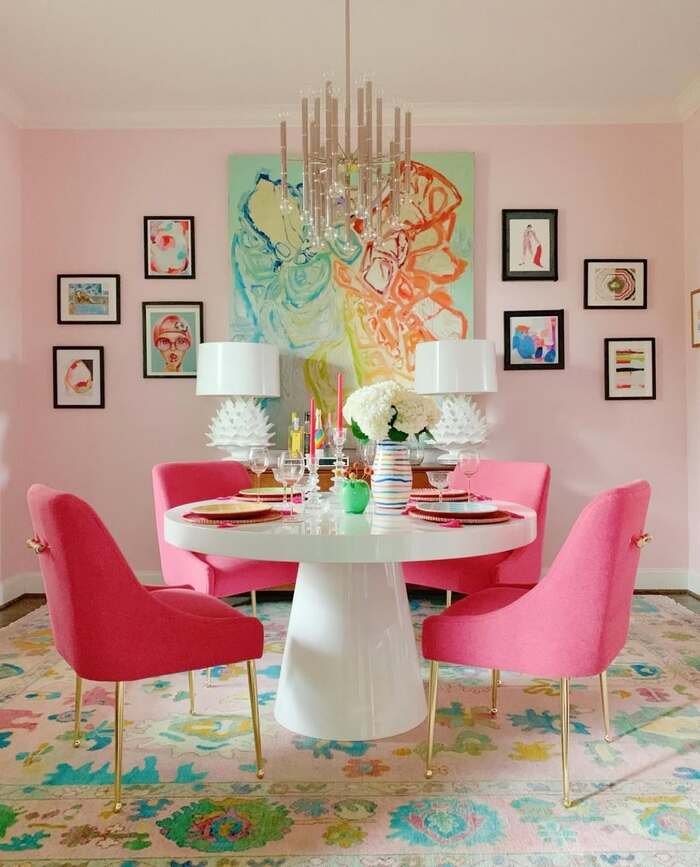 Swap your dining chairs to a pink tone. It changes everything fast.