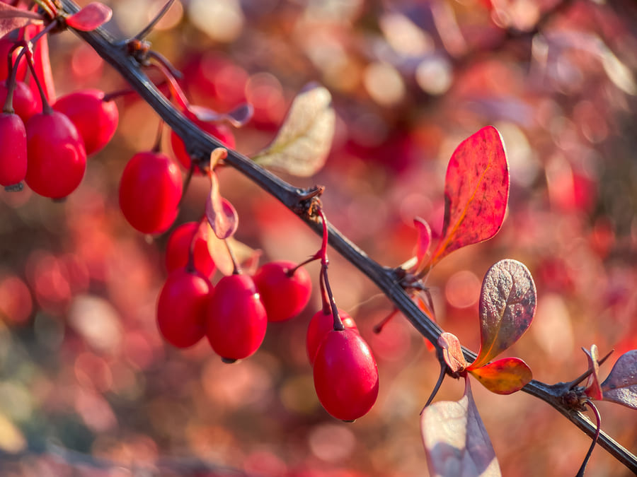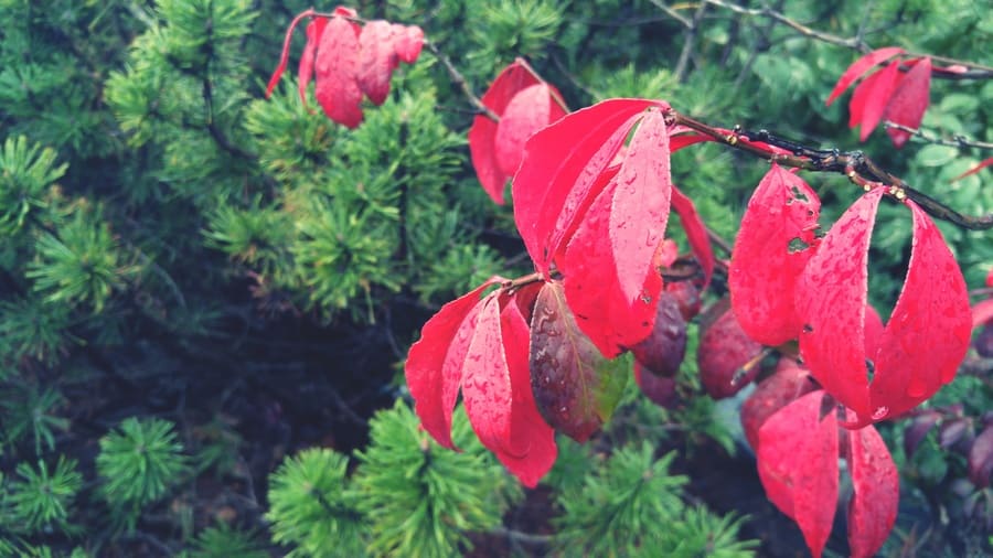 Hack: For bright red leaves, try oakleaf hydrangea or blueberry bushes. They give you the color show and even a snack if you like berries.