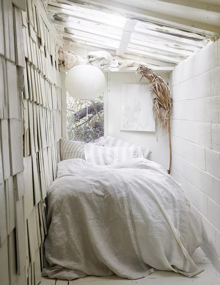 That long skinny sleeping nook with a translucent roof made me grin. When a room can’t be wider, make it softer. Pile on linen in white and fog gray, then let everything drape a little. Imperfect folds feel intentional and cozy. I tuck a paper lantern in the center, because a round shape calms all the straight lines. Paint walls, floor, and trim the same soft white, which blurs edges so your brain can’t find the limits.