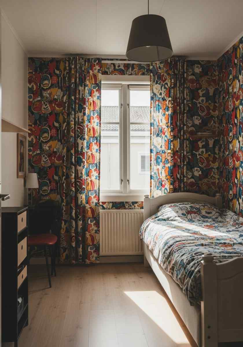 You can go bold without chaos. Choose one hero pattern—wallpaper or curtains—not both. Then keep bedding solid, maybe one striped pillow to bridge.