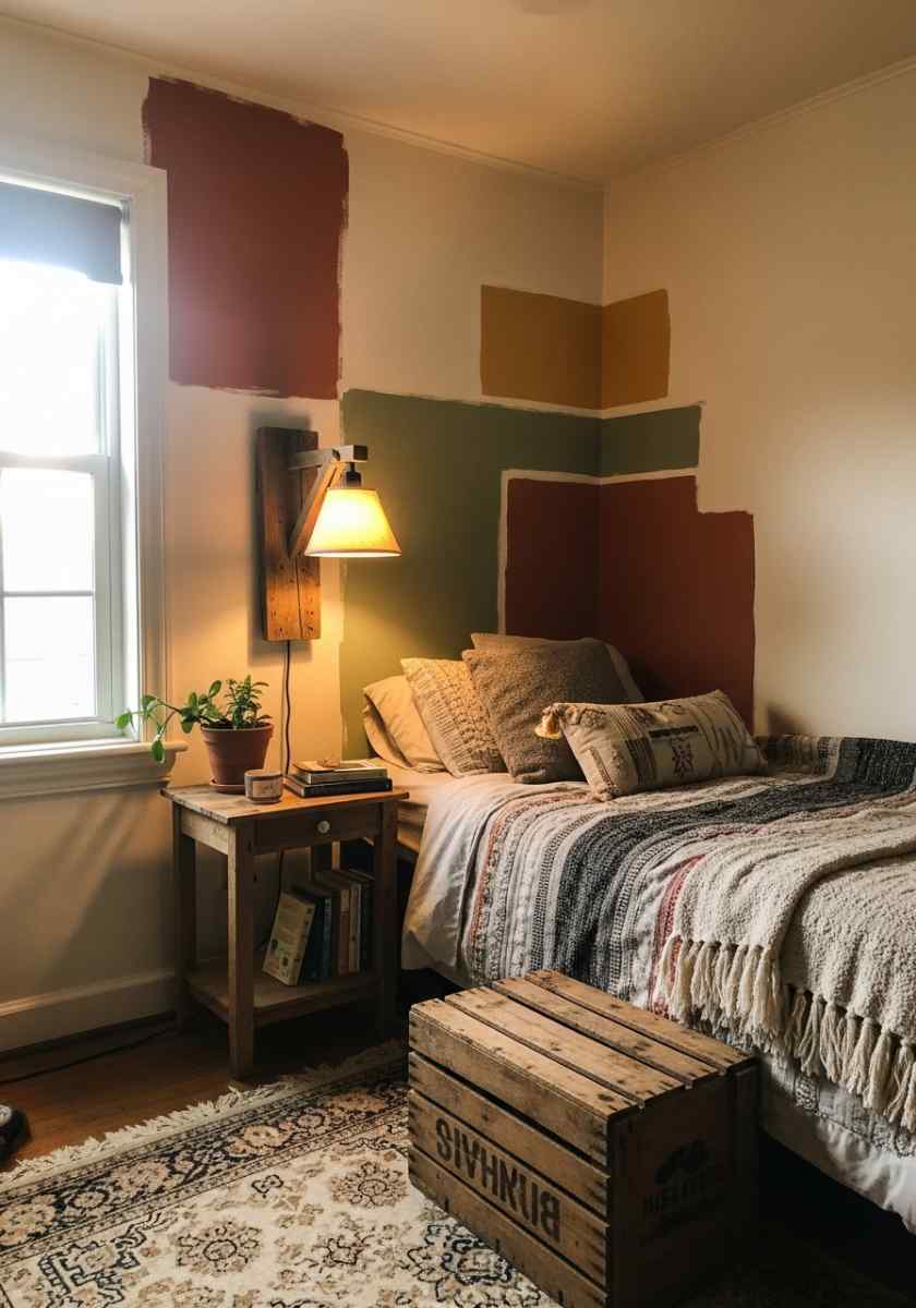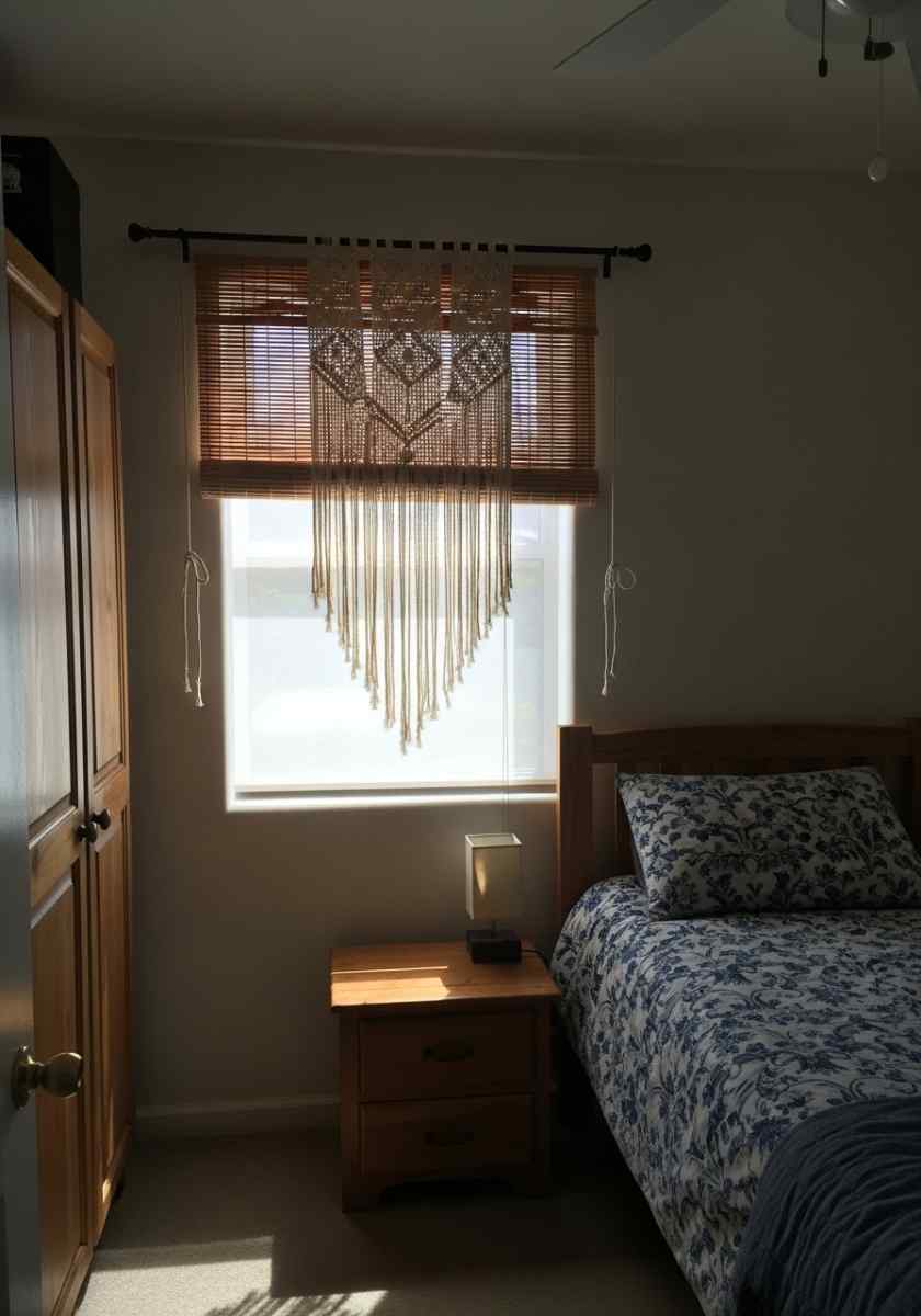 Keep the nightstand tiny—think a round rattan stool—and hang a plug-in pendant instead of a lamp hogging space. Use three pillows max; boho can get wild fast. A wall-mounted rack holds scarves and hats like art.
