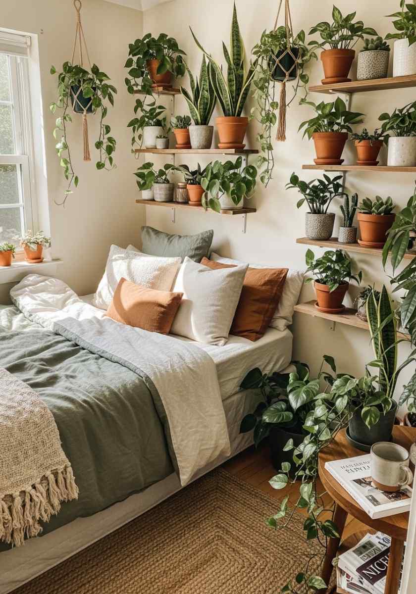 Yes—go vertical shelves, choose low-maintenance species, and use proper drip trays. Keep textiles breathable so the room doesn’t feel damp.