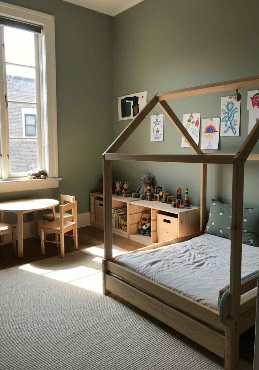 Small Kid’s Bedroom with Toy-Rotation Cubbies