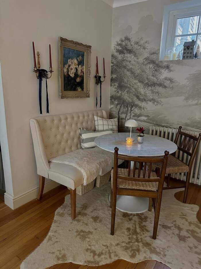 4) Banquettes worth it? Yep, saves chair space, and tiny dining room decor ideas love them.