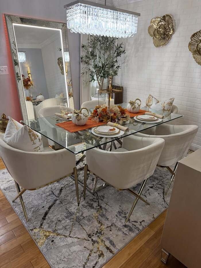 If you want this look, choose a mirror that’s not too tiny. A small mirror on a big wall looks sad, sorry. My hack is to center the mirror with the table, not with the wall. Your table is the anchor, so line the mirror up with it and everything feels balanced. Keep your centerpiece soft and neutral, like dried stems or pale flowers, so it doesn’t fight the mirror reflection. And if your walls are plain, add texture through lighting or a vase. In a small dining room, texture matters more than extra stuff.