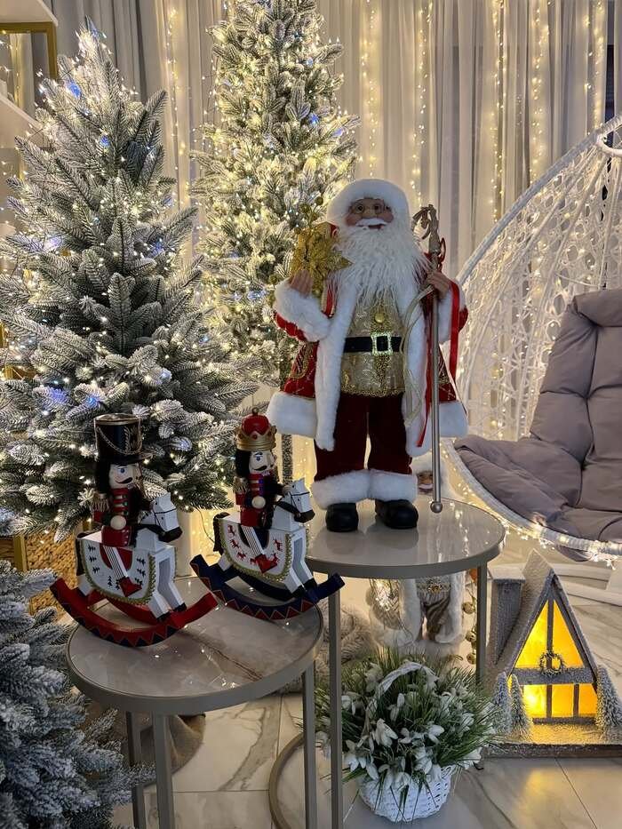Place the Santas or nutcrackers at the base to build a story. I added a few cinnamon pinecones and dried orange slices for scent. If your lighting feels harsh, twist fairy lights with one strand of micro-pearls. The pearls reflect the bulbs and make the white and gold Christmas decor feel soft, almost candlelit, without changing your bulbs.